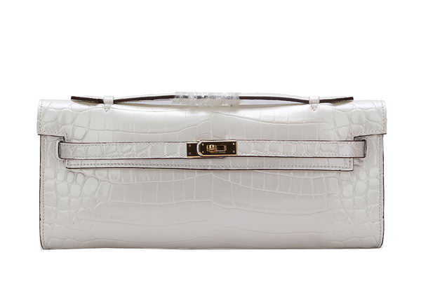 Home » Replica Handbags >> Hermes Handbag >> Hermes Shoulder Bags >> Hermes Kelly Clutch Bag Croco Leather K1002 White