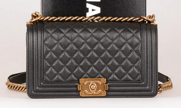 Home » Replica Handbags >> Chanel Handbag >> Chanel Le Boy >> Boy Chanel Flap Shoulder Bag Black Original Cannage Pattern A67086 Gold
