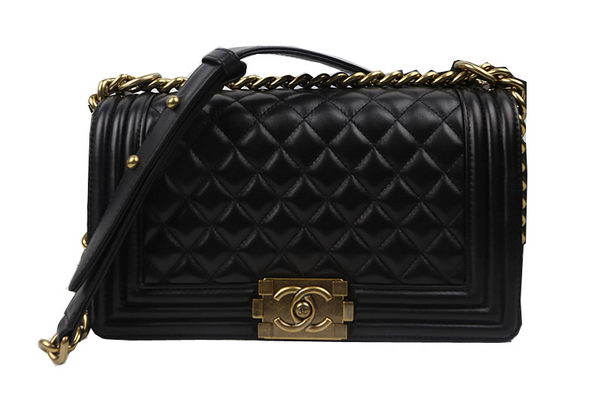 Home » Replica Handbags >> Chanel Handbag >> Chanel Le Boy >> Boy Chanel Flap Shoulder Bags Black Original Sheepskin A67025 Gold