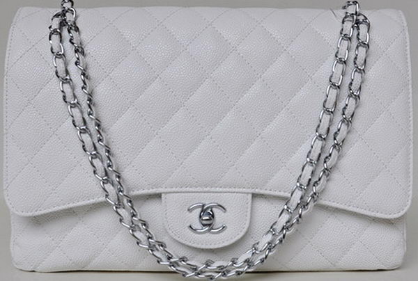 Home » Replica Handbags >> Chanel Handbag >> Chanel Classic Bag >> Chanel Maxi Quilted Classic Flap Bag White Cannage Patterns A58601 Silver