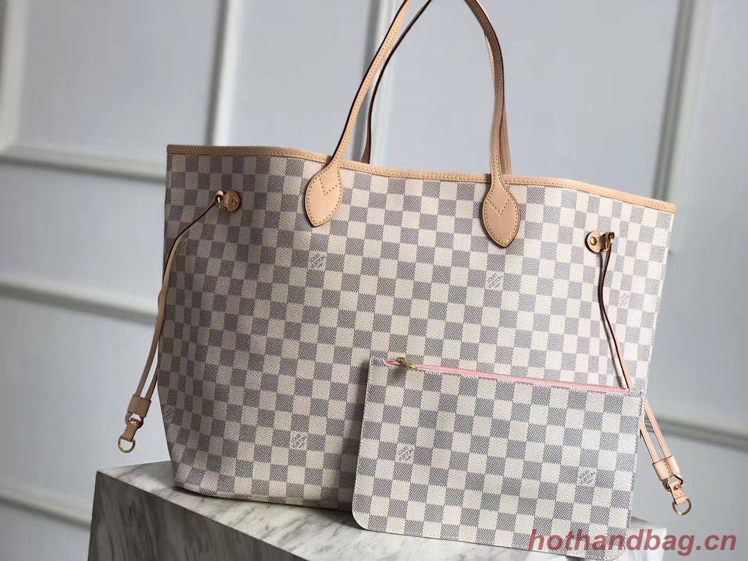 Home » Search Result >> Louis Vuitton Damier Azur Original Leather Bolso NEVERFULL GM N41604 Pink