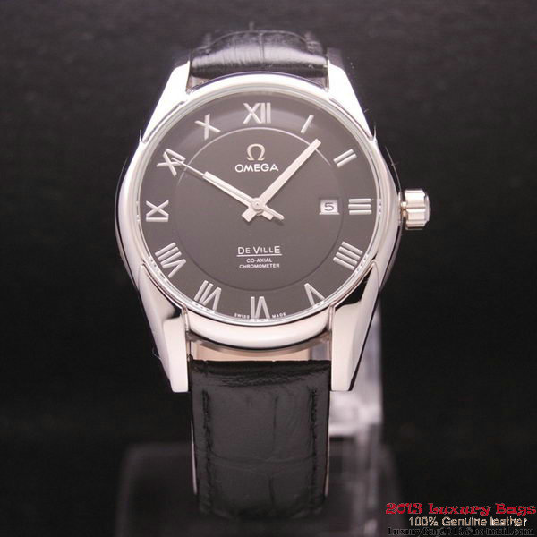 - OMEGA DE VILLE Co-AXIAL CHRONOMETER Steel on Black Leather Strap OM77008
