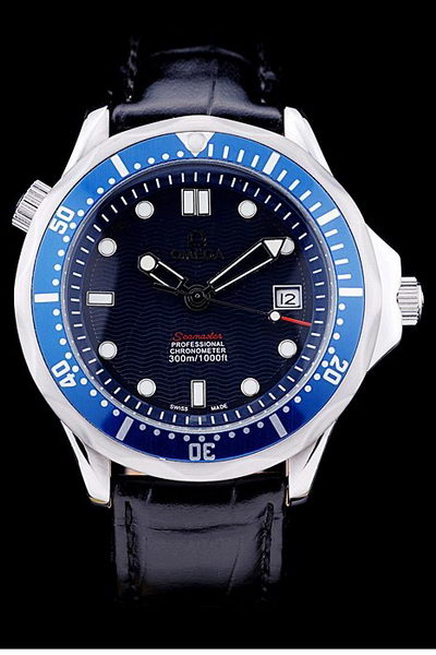 Bezel: Blue enamel polished stainless steel cutwork bezel with index and Arabic numeral seconds marker